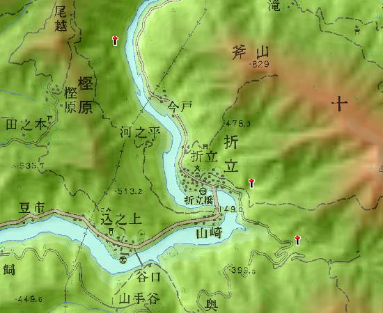 ![]() 上の赤点は「雨滝」 下の方上は「中谷の滝」 下は「猫又の滝」です