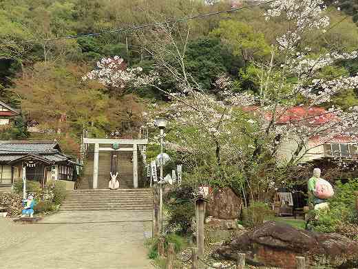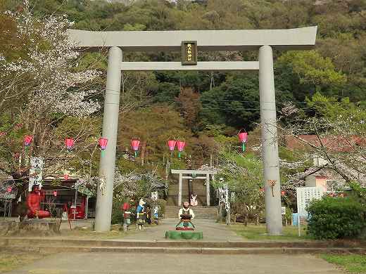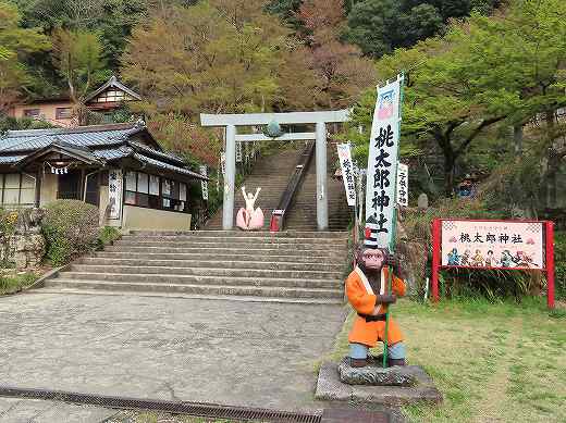 桃太郎の童話に登場する人形が 境内の至る所にあります
