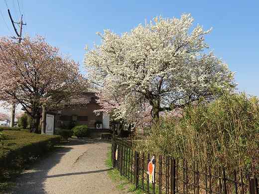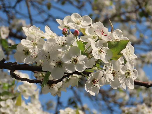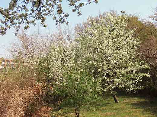 右端奥の緑っぽい花は「アイナシ」 手前に重なる薄ピンク花は「ソメイヨシノ」 左の方にある 緑っぽい花は すべて「マメナシ」です その7は、こちらへ